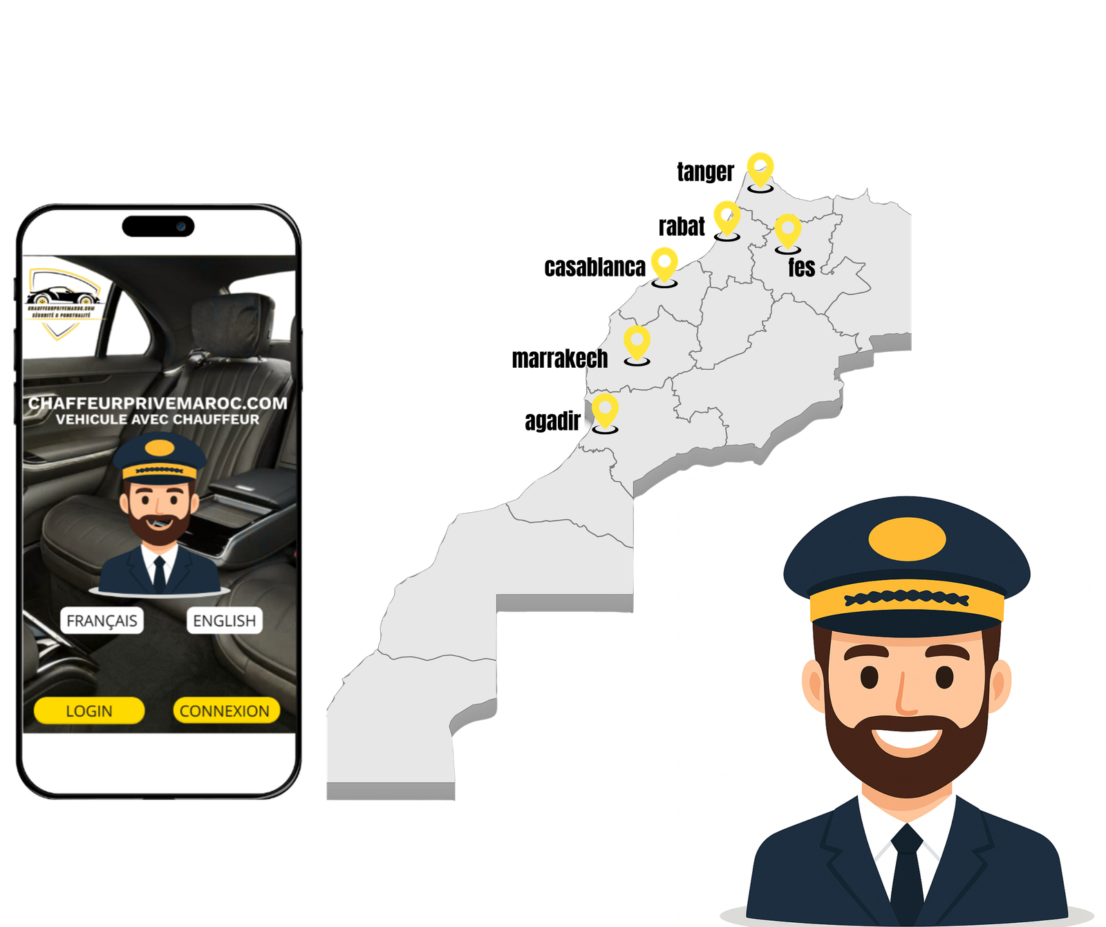 Nous mettons à votre disposition des véhicules haut de gamme avec des chauffeurs professionnels, pour tous vos déplacements entre Casablanca, Rabat, Marrakech, Fès, Agadir, Tanger, Ouarzazate et bien d’autres destinations à travers le Maroc. Offrez-vous le confort d’un transport privé entre les villes marocaines, sans contrainte d’horaires, sans stress, avec un chauffeur professionnel à votre service.